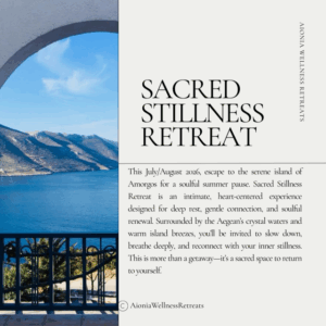 On the magical island of Amorgos, Greece, the Sacred Stillness Retreat invites you into a week of profound renewal and peace. Surrounded by endless blue waters, sun-drenched cliffs, and the gentle rhythms of island life, this retreat is a sanctuary designed to restore balance to your body, mind, and soul.